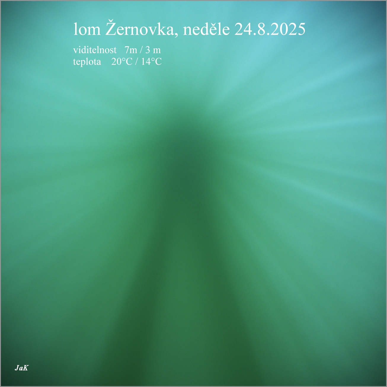 lom nás nezklamal, viditelnost 7m/3m, teplota vody 20°C / 14°C